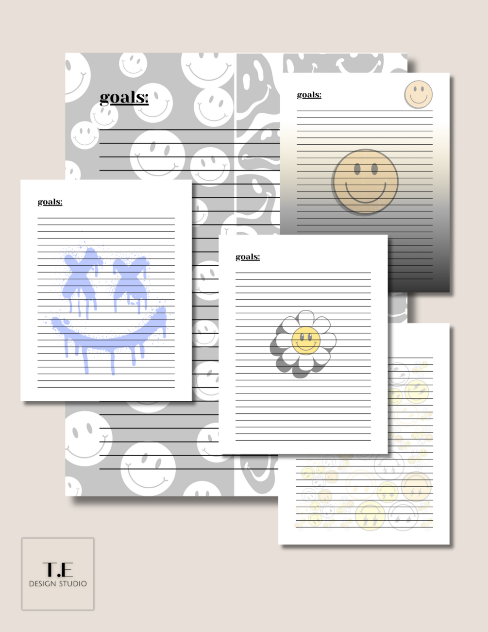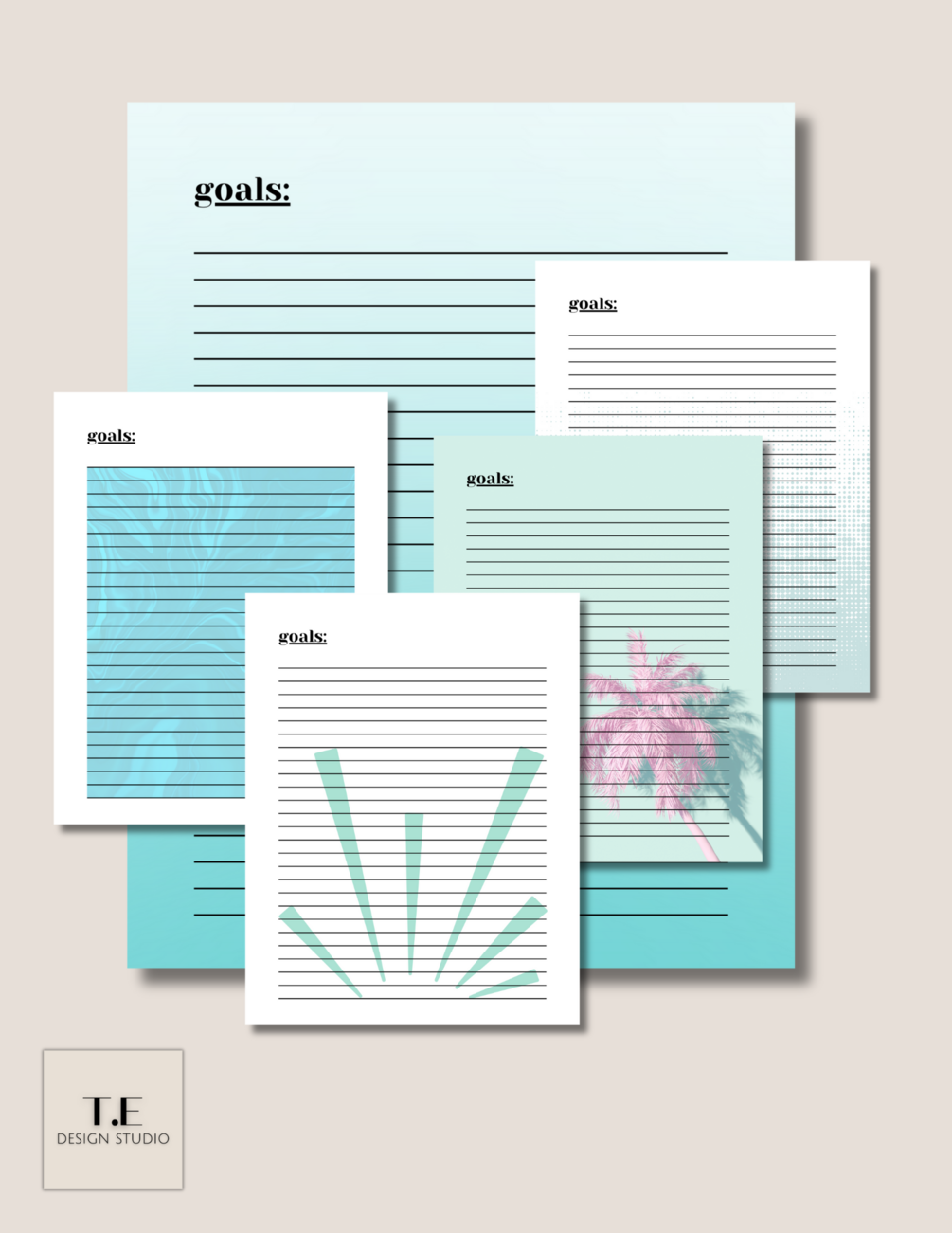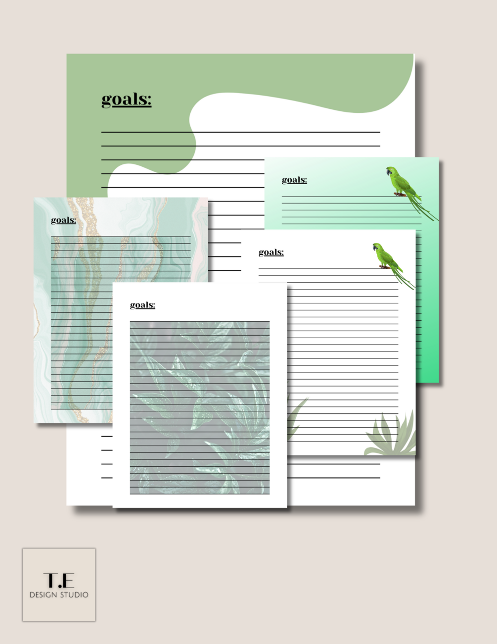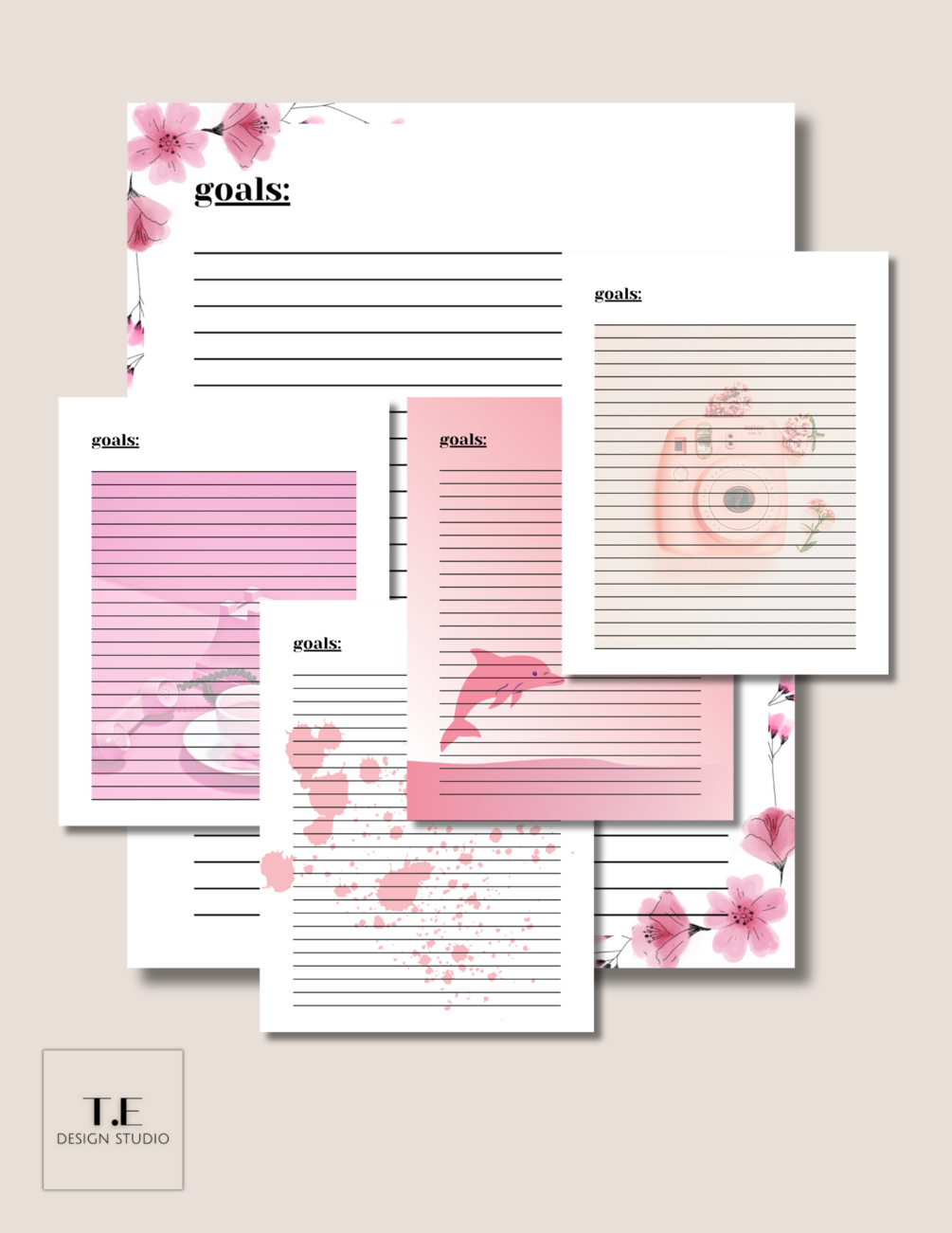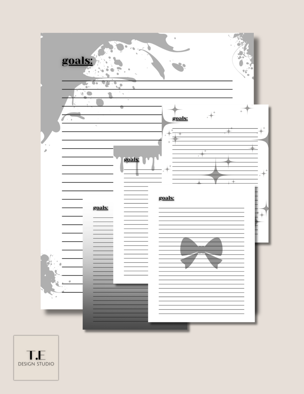 15+ themed bundle of 5-pack note-taking printables for your goals